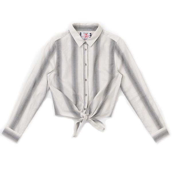 グレー ストライプ シャツ レディース